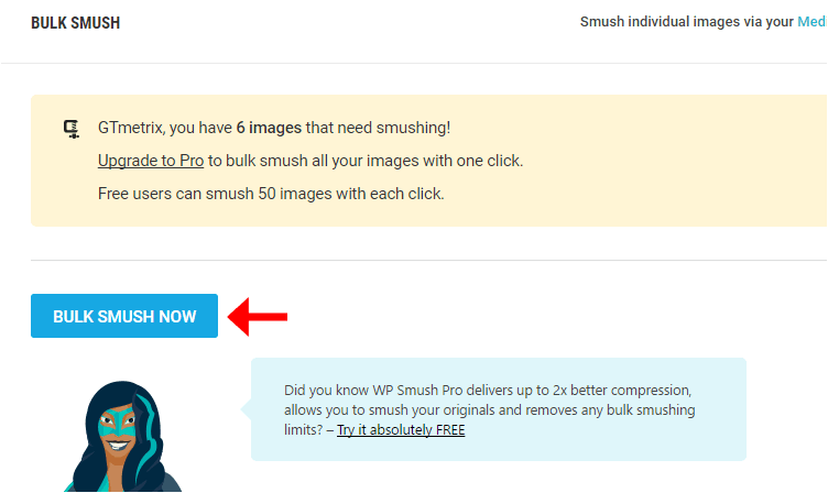 در قدم بعدی، تمام تصاویرِ وب سایت خود را با استفاده از بهینه سازِ گروهیِ این افزونه بهینه کنید! شما در نسخه رایگان میتوانید با هر بار انتخاب 50 تا عکس را در یک زمان بهینه کنید. البته این به معنای استفاده تا 50 عکس نیست و میتوانید مجدداً صفحه را بارگزاری کرده و به ادامه بهینه سازی بپردازید.