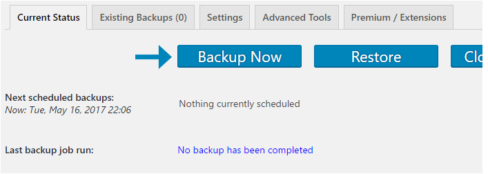 پس از انتخاب گزینه ها، روی Backup Now کلیک کنید. نسخه پشتیبان کاملی از وب سایتِ شما ساخته خواهد شد که حالا میتوانید با خیال آسوده اقدام به تغییر ساختارِ سایت خود کنید.