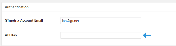 پس از نصب و فعالسازیِ افزونه، اطلاعات ایمیلی که با آن در جی تی متریکس ثبت نام کردید و API مورد نیاز درخواست می شود. شما میتوانید با ورود به صفحه تنظیمات اکانت جی تی متریکسِ خود این API را بدست آورید.